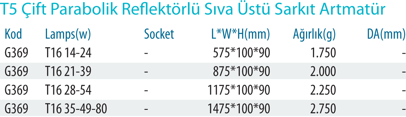 T5 Çift Parabolik Reflektörlü Sıva Üstü Sarkıt Artmatür