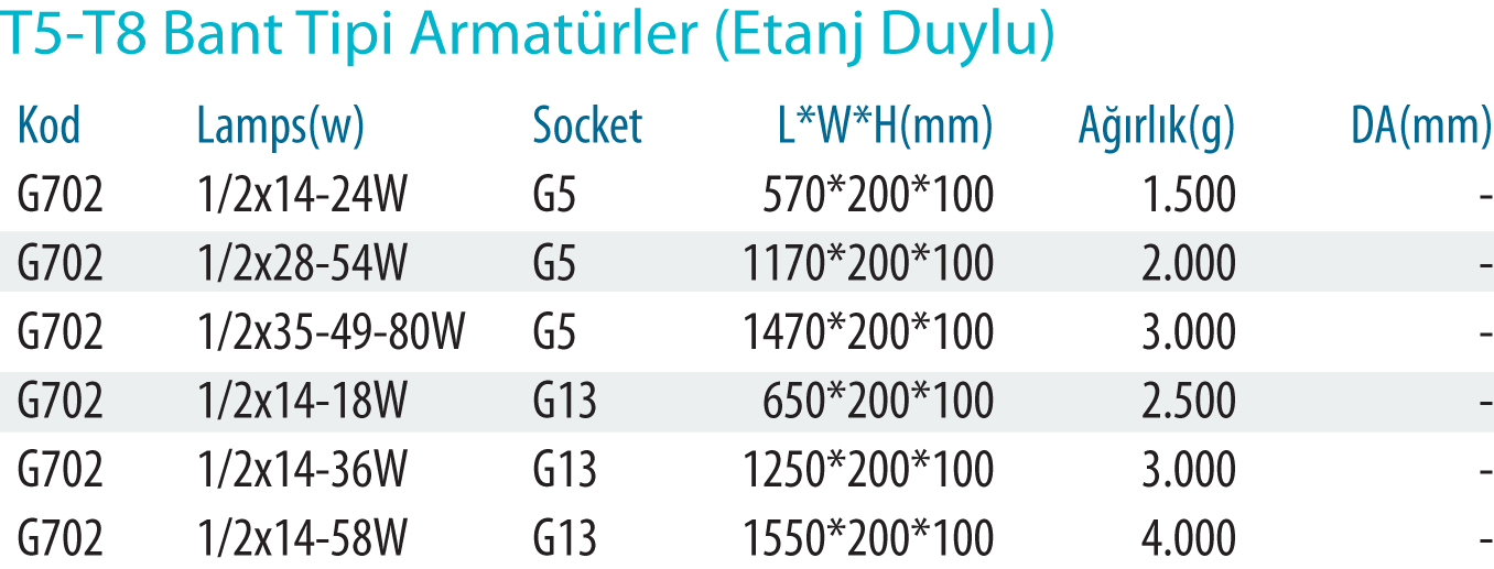 T5-T8 Bant Tipi Armatürler (Etanj Duylu)