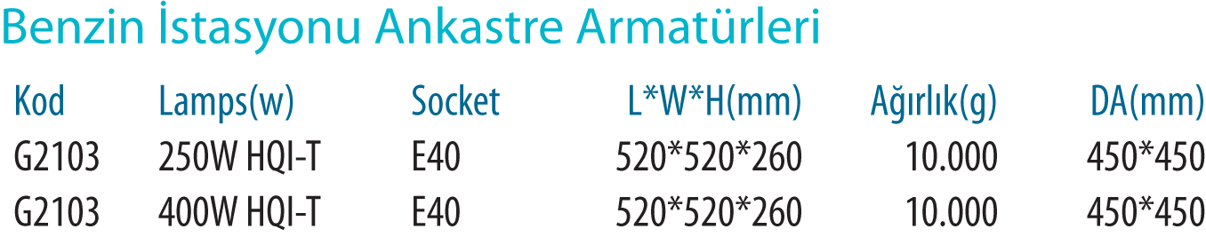 benzin istasyonu armatürleri G2103