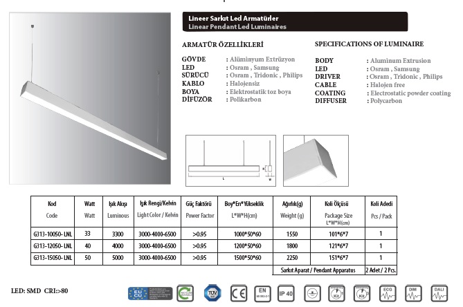 Lineer Sarkıt Led Armatürler
